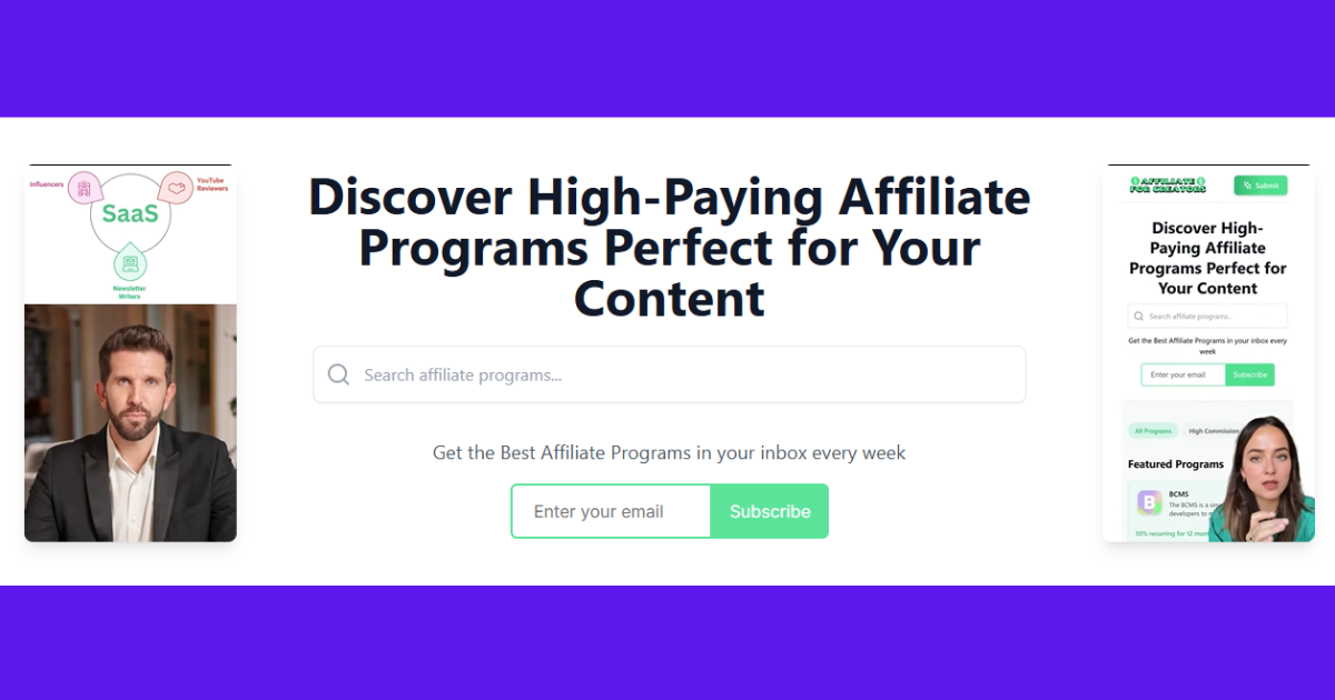 Affiliate for Creators is a high-paying affiliate programs directory designed to help content creators, bloggers, and digital marketers discover the best affiliate programs across various industries, including tech and marketing. This platform is perfect for those looking to monetize their content and audience. By leveraging Affiliate for Creators, users can find high-commission programs that align with their niche, enhancing their earning potential.