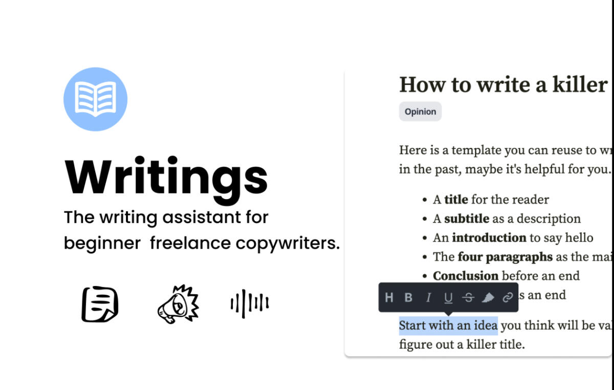 Writings is a simple and free writing app designed for writers who want to grow their writing habit without distractions. This intuitive platform is ideal for beginner content writers, as well as experienced writers, who want to streamline their writing process and establish a strong online presence. With Writings, users can draft, edit, publish, and analyze their content all in one place.